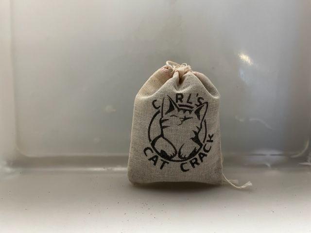 Carl’s Cat Crack is catnip leaf and flower that is grown here at the farm in Lebanon, NH. After we harvest the plants, we dry and process them to preserve just the leaf and flower. No large wood stems are processed into the mix, this is all leaf and flower.